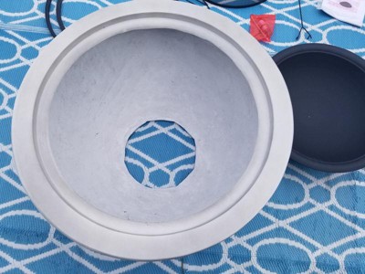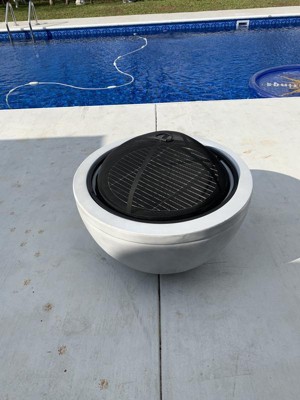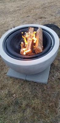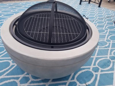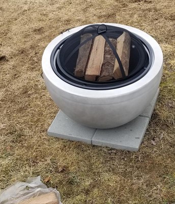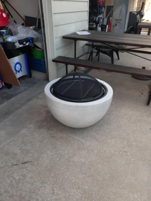 [This review was collected as part of a promotion.] This firepit is pretty neat! It very modern looking and stylish. It's made from a durable material, but its boy concrete or metal, so it's not too heavy. The metal bowl sit in the bowl kind of. Weighs about 50 pounds. It's got a mesh lid so you you dont have to worry about fly always. Overall. Very happy!