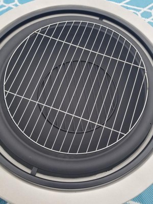 [This review was collected as part of a promotion.] I love this! It is an awesome addition to the backyard. The stone finish is really simple and matches with everything. I love that it comes with a grate to cook food on, unlike my other fire pits. The poker comes in handy too, we'd been using a stick! I love the casing that goes over it that keeps ashes from flying everywhere. This way we can actually have fires when there's a breeze. No issues here!