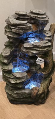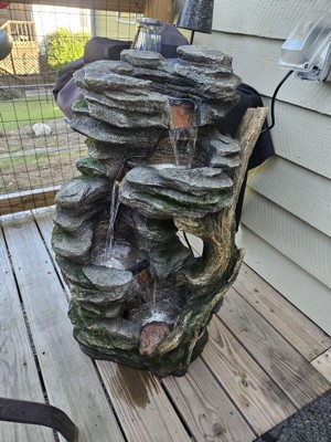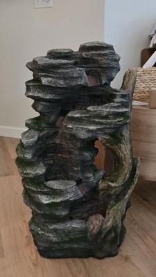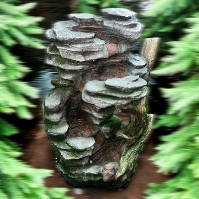 Teamson Home 32" 3-Tier Cascading Faux Rock and Wood Fountain Brown