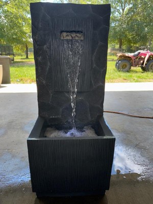 Teamson Home 38.5" Faux Slate Contemporary Outdoor LED Waterfall Fountain with Pebble Base, Red Rock