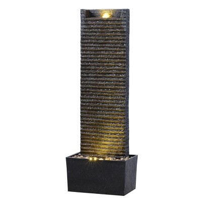 Teamson Home 38.5" Faux Slate Contemporary Outdoor LED Waterfall Fountain with Pebble Base, Red Rock