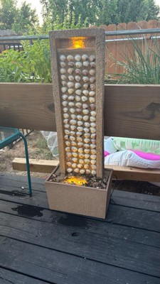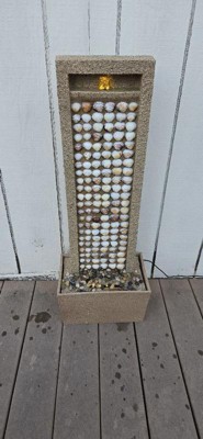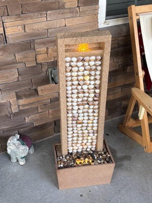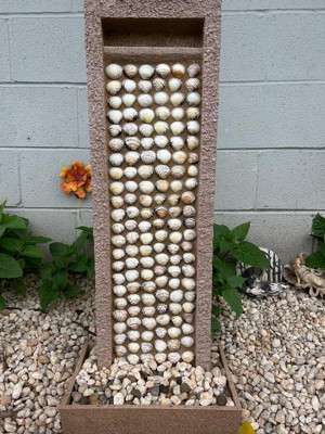 [This review was collected as part of a promotion.] This fountain is a beautiful addition to any garden or patio. Or even an entryway would be a beautiful idea. The fountain stands a pretty good size and lights up different colors and the water trickles down the real sea shells for a serine and peaceful environment. It’s very heavy and well made but still light enough to be moved around easily. The material is like a granite and the real sea shells look to be adjoined with precision for a beautiful and unique balance. It’s a very affordable for the size and quality. This brand always makes the best.