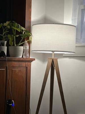 The Teamson Home Romanza 61.81" Tripod Floor Lamp's minimalist design will complement any décor. With a faux natural wood frame and a white drum shade that diffuses the light for a soft, inviting glow. Great in the living room, bedroom, or office.
