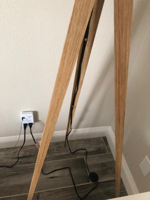 [This review was collected as part of a promotion.] I got this lamp because I liked its clean lines. The assembly was fairly straightforward. The lamp shade is assembled with a rubber loop and attached with velcro. I like that there is a foot push button light switch to turn on and off the lamp but I do wish the cable wasn't as visible. Depending on where you have the lamp positioned you might be able to conceal this better. It's fairly light and portable but not extremely sturdy. From the photos, this lamp looked like it had wood legs, but it turns out that they are metal legs with wood paint stickers. At its price point, this is fine but I would have gladly paid more for wooden legs.