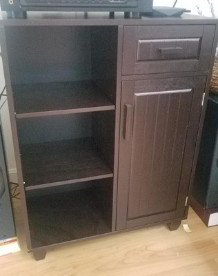 [This review was collected as part of a promotion.] I received the Elegant Home Fashions Wooden Floor Cabinet with Drawer in espresso shade from tryit. I really like this cabinet. It's not too big and has enough shelves to store whatever you need. There is also an anchor on the back so you can screw into your wall preventing it from tipping over. It goes great with thr TV table and desk I have in my room. It was easy to assemble. I really like this cabinet because I now have somewhere to put some of the things I had to store in my closet.