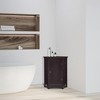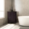Teamson Home's Glancy Wooden Freestanding Corner Floor Cabinet has a dark brown finish, crown molded top, shaker-style legs, and a faux louvered door. The interior adjustable shelf provides better organization and makes items easier to see.