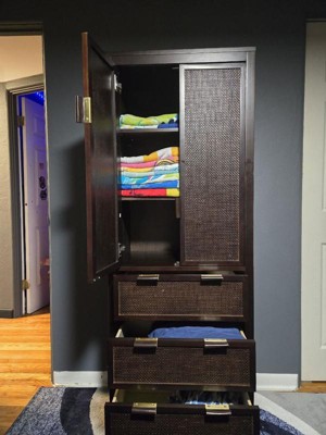 [This review was collected as part of a promotion.] The storage is deep and wide enough for good use. I have so many pool towels in the top half with still so much more room than my hall closet. The drawers I have my king size sheet sets in and they fit perfectly. I would definitely recommend this but my only complaint is that it was damaged in multiple places not from shipping but from packing. Also, it says its black it is most definitely not! " I received this item free from Influenster for my honest review"