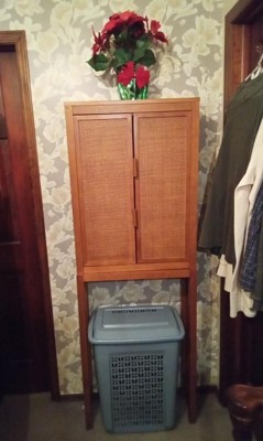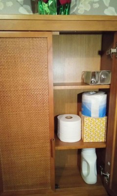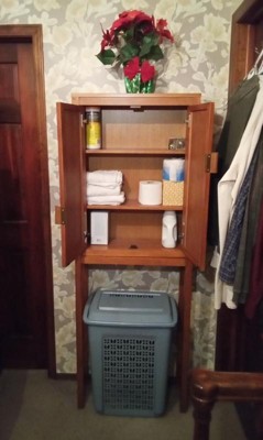 [This review was collected as part of a promotion.] Teamson Home Hatteras Over Toilet Storage is an exceptional storage solution. While designed to fit over a toilet, it can also be used as a storage cabinet in other areas of your home. I found it works as an over the hamper laundry room storage. With its two adjustable shelves, you can get the right customization that fits your needs. The two easy closing doors can hide what you have stored away while showing off a decorative texture and faux leather handles. It's made of a sturdy pine with a natural finish, so you can feel confident about its load capacity to store your everyday or excess items in a stylish, organized way. There is a wall-mount safety frame that secures the unit in place. There are also a couple of places to secure it to other wall safety brackets. This is something you definitely want to secure to the wall. The smooth finish of the shelves and top make it easy to keep clean. The top of the unit can be used for extra storage or a space for seasonal decor. The doors have good hinges, magnetic closures, and faux leather handles that are a soft and modern touch. The cabinet comes with minimal assembly instructions. There is a QR code that is supposed to take you to the website with assembly instructions, but when you scan the code, it takes you to a page about how you get instructions by scanning the QR code! You then follow those directions and enter the proper product code numbers, only to have it direct you to completely unrelated products and no instructions whatsoever! You will find yourself having to make do with only the basic illustrated instructions that came with the unit, and that will be time-consuming to navigate and somewhat frustrating to execute. The assembly is the worst thing about it, but luckily you only have to do that once! Overall, it is a versatile, sturdy, and stylish storage cabinet unit that will work great over the toilet or in a laundry room or anywhere you need a bit of sophisticated storage.