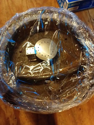 [This review was collected as part of a promotion.] This fountain is easy to set up and absolutely beautiful. It comes with the glass rocks and simply fill with water and plug up. You can get a little can of propane and it beautifully lights up. The water trickling down the side is so tranquil sounding.