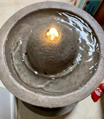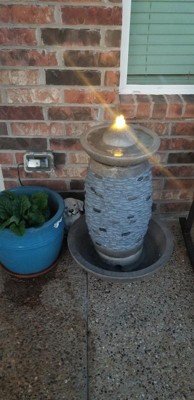 [This review was collected as part of a promotion.] This is a great addition to our back deck. We have white lights strung around the deck, so when this is on at the same time the water sounds and little light at the top really set the mood. It is so nice to sit outside when it's dark with this on.