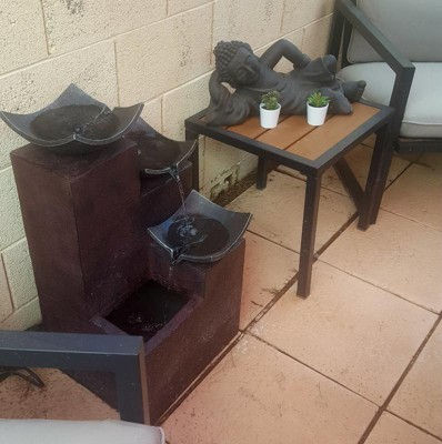[This review was collected as part of a promotion.] One of the many things I love about spring (and summer) is sitting outside, relaxing and listening to the water move from one lip of my the water fountain to the next. This fountain is no different with it's beautiful fountain sounds. It blends perfectly with the surrounding area to keep the zen feeling throughout the day. Easy to setup and easy to turn on and when I am done listening to the great water sounds, I feel relaxed and ready to move on with my day. This is definitely a daily sound (the water pouring) I need in my life!