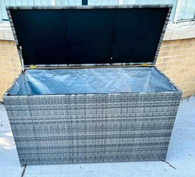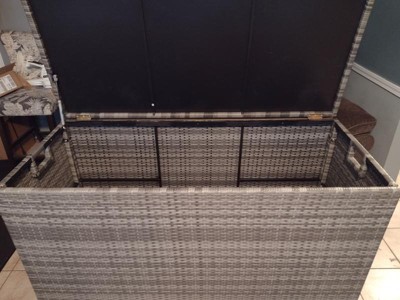 [This review was collected as part of a promotion.] I got Teamson Home Wicker 154 Gallon Patio Storage Chest in Gray and I love, love this product not only is it effortless to assemble it is high-quality, strong, sturdy, spacious, provides an easy open/close because of its convenient hinges, perfect for your patio furniture cushions, pool accessories, or whatever else you want to put in it, and has a beautiful color that will match any decor. I am so proud to own this product and I highly recommend it.