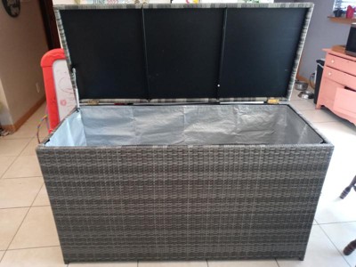 [This review was collected as part of a promotion.] I received this Teamson Home - Wicker 154 Gallon Patio Storage Chest for my patio cushions and it is the best thing for when bad weather moves through or off season storage. It fits all my cushions perfectly and I have room for more items to fit into as well. It is very sturdy and looks very stylish on my patio. Absolutely love it!
