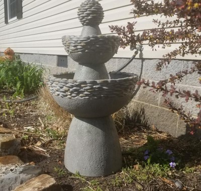 [This review was collected as part of a promotion.] I got this Outdoor Garden Zen 2-Tier Waterfall Fountain it is beautiful addition to my yard looks very nice.I love its sound .very easy to put together took few minutes.The water pump works well size is perfect for my yard i am happy with it.will recommend to a friend