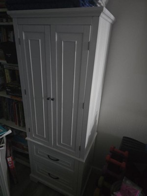 [This review was collected as part of a promotion.] It wasn’t hard to put together, I did have bit of trouble but was my fault for placing one of the pieces backwards. The instructions are simple and easy to read. I just got carried away half way through thinking I could do it without them. This Armoire cabinet is simple, light yet STUNNING. It will fit perfectly in any living space. It’s slim with double doors that latch with a magnet. It has 2 sliding drawers below for extra storage space. I haven’t yet put my items in it the way I want it to be. All in all it arrived fast, it’s beautiful, easy instructions and such a modern feel. I love it, it’s exactly what I needed!
