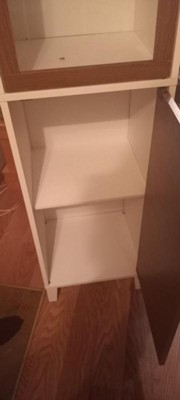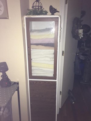 [This review was collected as part of a promotion.] I love this linen cabinet. It has lots of room to store towels and wash rags. Love the shelf divider. Really like that it has a glass door on top to easily see what is where it fits in a small corner.