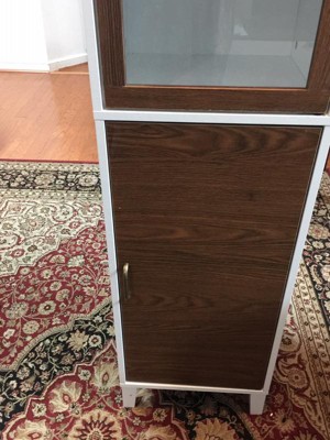 [This review was collected as part of a promotion.] I really love Elegant Home Fashions Tyler Modern Wooden Linen Tower Cabinet, Walnut/White. It is heavy duty and very sturdy. It looks awesome in my bathroom. I love the fact that you can not see in the bottom party of this so I keep all my cleaning supplies in there. Also glass door on top keeps dust away.
