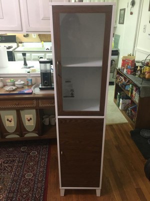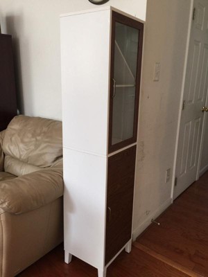 [This review was collected as part of a promotion.] Home Fashions Tyler Modern Wooden Linen Tower Cabinet, Walnut/White. It is indeed elegant and really looks nice in my bathroom. I love how different it is and functional too. The combination of glass, walnut, and white really is different and looks great.