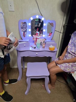 - Charming Heart Shaped Design: Adorned with heart-shaped side mirrors, soft curves, and built-in LED lights, this purple vanity set adds a magical touch to any bedroom or playroom.