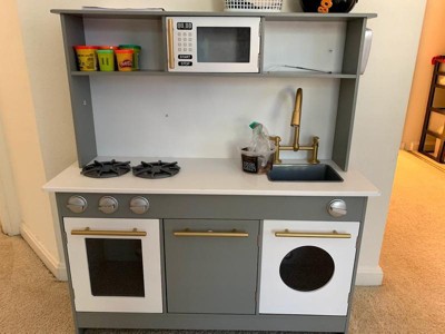 [This review was collected as part of a promotion.] My three year old loves to “cook” and “clean.” I had this set up in th extra space within my kitchen and my daughter plays with it while I cook dinner. I purchased her some kitchen supplies for her new kitchen and she’s been thrilled! The grey colors are super cute and gender neutral and it was super easy to set up! We absolutely love it at my house!