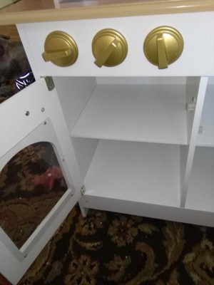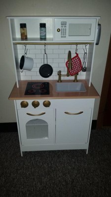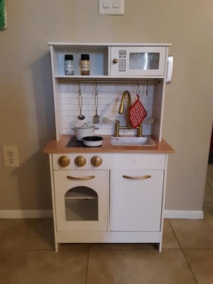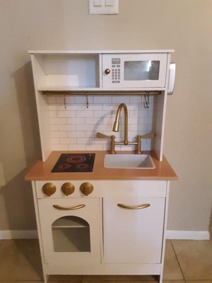 Teamson Kids Little Chef Boston Compact Farmhouse Play Kitchen with Realistic Sink, Oven,Microwave, and Accessories, White/Gold