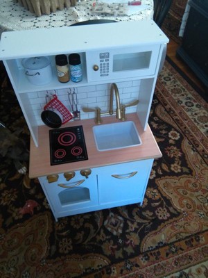 [This review was collected as part of a promotion.] Just set this up in my kitchen and my son absolutely loves it!!! It’s a simple little play set without being to feminine, great for little boys with an imagination. the finishes are just right and it’s pretty modernized for any little one! They’ll feel like their right there with you cooking!