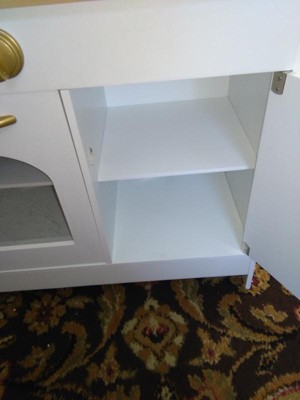 [This review was collected as part of a promotion.] Wow! This Little Boston play kitchen is very nice. The kitchen was very easy to assemble. The kitchen comes with a skillet, a pot with lid, hot mit, ladle, spatula, phone, salt and pepper shaker. The kitchen has a microwave, sink, and oven. I love the hooks so you can hang the hot mit, spatula, and ladle. The kitchen is white with gold knobs and handles. My children absolutely love it and have played with it for hours on end. If you're in the market for a play kitchen, I highly recommend this one.