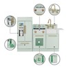 - Stylish Modern Kids Wooden Kitchen Playset: Features a trendy mint finish, elegant gold hardware, and a farmhouse sink, adding charm and style to any playroom or home environment.