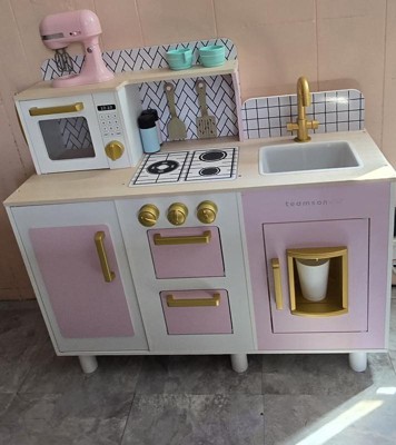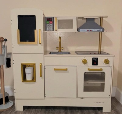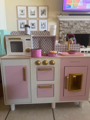 [This review was collected as part of a promotion.] I can't say enough good things about the Teamson Kids Play Kitchen—it's been an absolute game-changer in our home! From the moment we unboxed it, my 3-year-old daughter was hooked, spending hours "cooking" up imaginary feasts for the whole family. The design is adorable with its pastel colors, whimsical details like the chalkboard surface for drawing menus, and sturdy wooden construction that feels premium without being overly flashy. What I love most: It's packed with interactive features—an oven with clicking doors, a spinning sink faucet, and plenty of storage cubbies for her toy pots and utensils (which we added separately, but it all fits perfectly). It's spacious enough for two kids to play side-by-side, fostering those precious sibling bonding moments. Assembly was a breeze—took my husband about 30 minutes with clear instructions—and it's held up beautifully to daily enthusiastic play, no wobbles or wear after months of use. At this price point, it's incredible value for the quality and the sheer joy it brings. If you're looking to spark creativity and pretend play in your little ones, this is the kitchen set to get. Highly recommend—our home feels like a happier, more imaginative place because of it! 🌟🍳