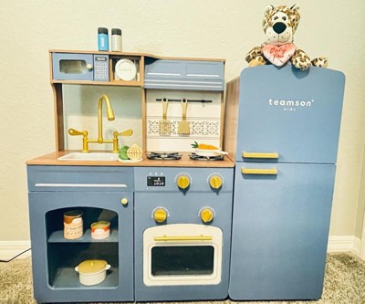 [This review was collected as part of a promotion.] I couldn’t be happier with the Teamson Kids Little Chef Normandy Vintage Play Kitchen! The design is absolutely beautiful—stylish enough to look like a mini real kitchen, yet playful and inviting for kids. The French-inspired details and deep blue color make it stand out from other play kitchens we’ve tried. What I love most is the quality. It’s sturdy, well-made wood, and the turning knobs, oven, and fridge give it such a realistic feel. My kids spend hours pretending to cook, store groceries, and create their own little recipes. It’s been amazing to see their creativity and confidence grow through screen-free play. The built-in storage is another huge plus—it keeps everything tidy and organized, which makes parents happy too! This kitchen is durable, charming, and has quickly become a favorite in our home. Perfect for imaginative play and worth every penny.