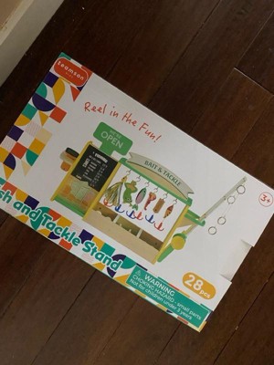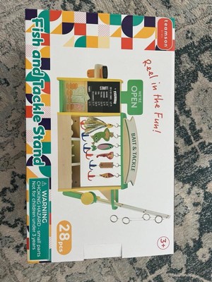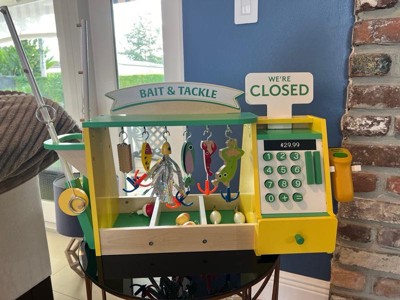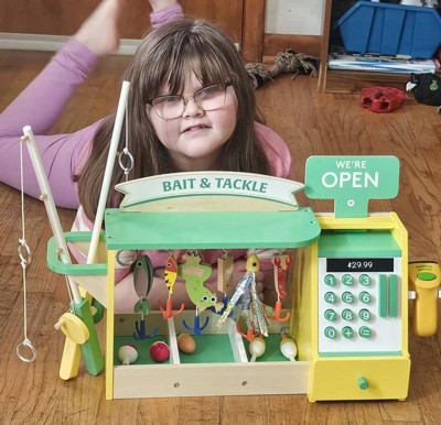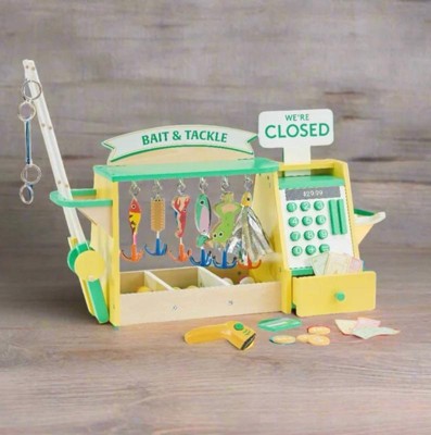 [This review was collected as part of a promotion.] This play set s designed for children who enjoy imaginative play. It includes two fishing rods a variety of lures as well as a cash register scanner. Limitless hours of fun. The craftsmanship is solid with durable wooden components.  The only thing I would suggest is a more sturdy location to set up the fishing rods so that they don’t fall over.