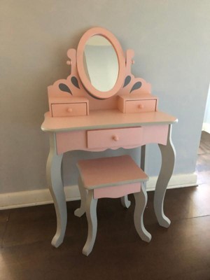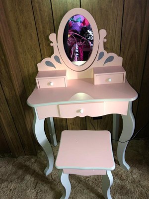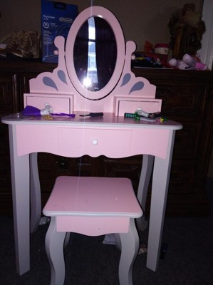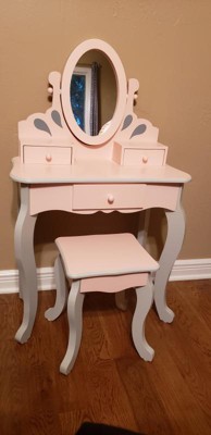 [This review was collected as part of a promotion.] My granddaughters loved this vanity. They played dress up for hours, and doing each others hair in front of the mirror. Which by the way is unbreakable. This vanity is sturdy and made from wood not plastic, So it's more like a piece of furniture than a toy. Assembly required, but easy enough to do. It is very pretty, pink with grey accents. Any little princess would love it.