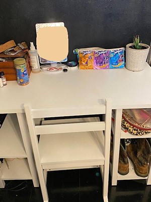 [This review was collected as part of a promotion.] My kids love this little "them-sized" desk. It makes them feel like it's something just for them. Originally it was going to be a desk for school work but my girls decided to turn it into their own personal vanity. They now have their own space to play dress up, store their beauty items, and prepare for school in the morning. The design is sleek looking and fits with most decor. That being said, it was a pain to put it together. A few parts I still need to add because I need wood glue to keep them attached. The desk was easier to assemble than the chair. I think I spent the most time just trying to get the chair together. It looks nice when it's done but I did get pretty frustrated assembling it.