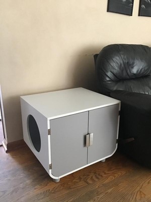 [This review was collected as part of a promotion.] I absolutely love this Cat Box Cabinet Side Table! It looks beautiful in my living room. Very well made, it should last forever. My kitties love it also, they went in and checked it out minutes after I set it up.