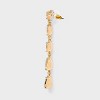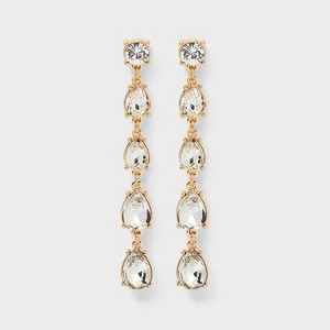 A: The earrings feature teardrop stones dangling from a round stone, creating a standout linear look.
