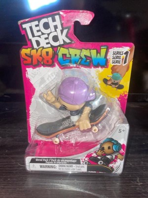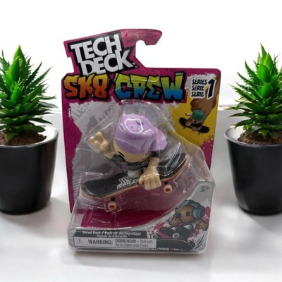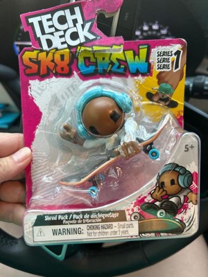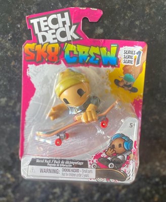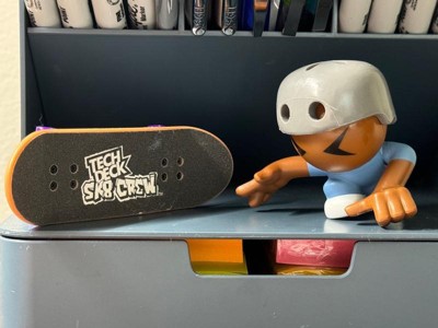Learn how to fingerboard with the all new, Tech Deck Sk8 Crew. Each pack comes with a Tech Deck board and Sk8 Crew member to get started. With 6 Sk8 Crew figures to collect, improve your skills to master moves like ollies and power slides. Snap the skate crew member onto the skateboard deck and start practicing. Scan the QR code for video tutorials to study your favorite moves. Take your Sk8 Crew on an adventure with the Ultra Sk8 Bus for bigger tricks and storage for the Sk8 Crew (sold separately). Ride and grind your new finger skateboards on the X-Connect series. Build out the Quarter Bowl Ruckus or Pyramid Shredder 2.0 ramp sets (each sold separately) for you to shred your skateboard decks on your favorite fingerboard obstacles like the Tech Deck Skatepark. There are a ton of Decks, toy figures & playsets to collect! Ride, flip, and grind with Tech Deck fingerboards and BMX from real skate companies! Tech Deck mini skateboards for fingers and ramp sets make the perfect gift for girls toys age 6-8 who love small toys, cool toys, hot toys. Are you looking for 3 year old boy toys consider Tech Decks as an alternative to toy cars as a boys toys age 6-8 item. Start small, go big and explore the world of finger boarding with Tech Deck Sk8 Crew Includes: 1 Sk8 Crew Member, 1 Tech Deck Fingerboard