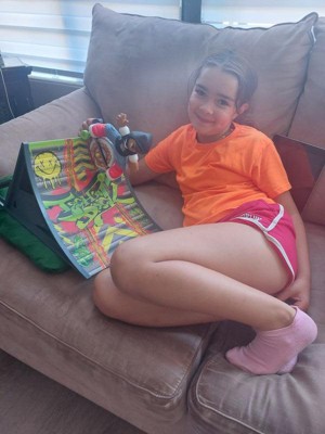 [This review was collected as part of a promotion.] I have to admit that this toy is entertaining not just my 8 year old but her parents as well! We've been doing family contests to see how can make the rider jump the highest and honestly it is a lot of fun! Excellent time away from screen and great family bonding session. The set up is very simple. The ramp, made of cardboard, is sturdy. The rider is made out of foam so it bounces when it falls. It can go quite high (up to 6 ft!). Thoroughly enjoyable toy.