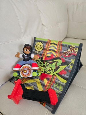 [This review was collected as part of a promotion.] My 5 year old son loves playing with the Tech Deck Shred n' Blast Skateboard toy. Very easy for him to connect the skateboarder to the launch stick. The ramp is a fun addition and helps to launch the skateboarder higher in the air. My 5 year old enjoys seeing how high he can launch it.