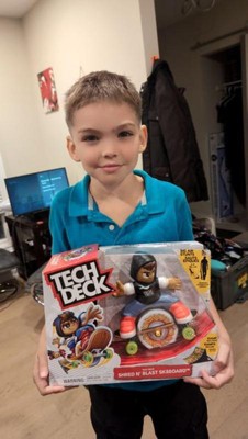 Hit the highest jumps and the fastest shreds with the Shred N Blast Skateboard, motorized for crazy tricks you could never do before! Use the included ramp to hit the highest jumps, or add it to your tech deck skatepark. Take the ramp out to the park, or stay indoors to Shred and Blast! Assembly Required. Trick right over your friends and family's heads with this fingerboard! Simply use the trick stick to rev it up, then put it down and set it loose, blast off ramps, floors or tables! Requires batteries (Not Included). There are a ton of Decks, toy figures & playsets to collect! Ride, flip, and grind with Tech Deck fingerboards and BMX from real skate companies! Tech Deck mini skateboards for fingers and ramp sets make the perfect gift for girls toys age 6-8 who love small toys, cool toys, hot toys. Are you looking for 3 year old boy toys consider Tech Decks as an alternative to toy cars as a girls and boys toys age 6-8 item. Bring the Tech Deck Shred N' Blast home today and hit big air stunts! Includes: 1 Shred N' Blast Skateboard, 1 Trick Stick, and 1 Ramp