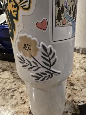 These stickers are very cute and fun. I love the colors and the flower designs. The stickers are puffy or 3D compared to most stickers. They work well on a flat surface, like a phone case. I put one of the stickers on my Standley, which works, but the edges don't stay down because it's on a rounded edge.