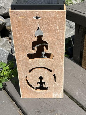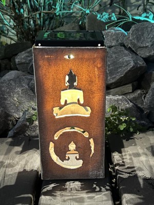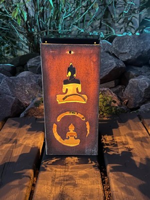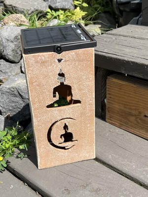Techko Maid LED Solar 10.8" Portable Buddha Cut Out Decorative Outdoor Lantern Clear: Solar-Powered, Plastic Material, 2 Light Settings