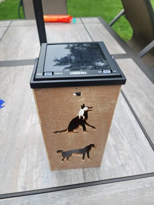 [This review was collected as part of a promotion.] This Solar Decorative Lantern with Dogs on it came just in time for camping. My son just loved going around the campground looking for bugs. This lateen is really bright and last a longtime for the light. The illumination of the dogs are really cool too. What a great product.