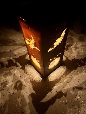 [This review was collected as part of a promotion.] My kids and I love this new Halloween lantern! I love the fact that there are no candles nothing to burn it’s all solar powered. We can’t wait to use it when the holiday season rolls around! My favorite part is how the cut outs reflect onto the wall or the house wherever you place it.