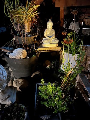 [This review was collected as part of a promotion.] I found the perfect place for my Buddha statue in my meditation garden. I placed it in a pot where I'm growing a miracle berry tree. It looks like Buddha is meditation under the tree. It weighs just right... not heavy, not too light. It's perfect! I absolutely love this statue! The details in the statue are absolutely beautiful! The solar panel and light are super easy to install. I placed the light in another pot aimed right at the Buddha and installed the solar panel in the ground beside it. It looks amazing at night! There's a lot of flexibility to place everything just how you want. I could not be happier with this statue!