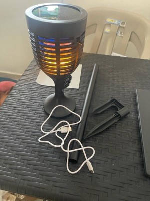 [This review was collected as part of a promotion.] I received the solar zapper torch in exchange for my honest review. I am quite pleased with the solar zapper. I sit it on the table beside of our chairs and the bugs go to the zapper instead of me. It it solar powered so no need to charge, however a charging cable is included.
