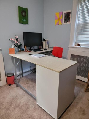 Techni Mobili L-Shape Home Office Two-Tone Desk with Storage