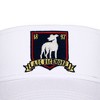 CUSTOM DESIGN: The AFC Richmond Greyhounds mascot appears on a blue shield in embroidered art on the front of this visor. Fans of the Ted Lasso TV series will love the fun custom design on this visor.