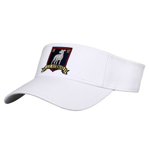 Cheer on your favorite football team with this Ted Lasso visor. The visor comes in white and features embroidered art of the AFC Richmond's greyhound mascot on a blue shield while a woven label on the back displays the series logo. The visor is made with high-quality cotton materials and is fitted with an adjustable strap and a wide brim for maximum comfort and protection. Ted Lasso fans will love this comfy visor.