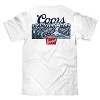 • Wearing your beer has a new meaning!: Kick back and enjoy the casual vibes with this Coors shirt featuring the Coors Banquet logo, and mountain waterfall graphic - printed on the left chest and back of a soft, white cotton tee.