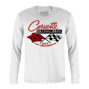 • Your New Favorite Chevy Shirt: Enjoy the nostalgia of the classic Chevrolet Corvette crossed flags logo and "Corvette Sting Ray" text - printed on the softest, white long sleeve cotton tee that we could find.